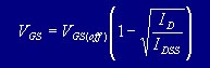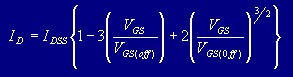 | 作为放大器的通常用法是VGS 、VGS (off) < 0(n沟道),VGS 、VGS (off) >0(p沟道)。式(10.4.1)用起来比较困难,多用近似的公式表示如下 |