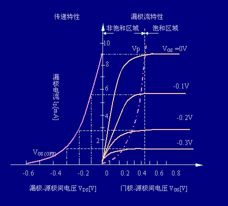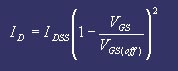 | 这个传输特性包括JFET本身的结构参数,例如沟道部分的杂质浓度和载体移动性,以致形状、尺寸等,作为很麻烦的解析结果可导出如下公式(公式的推导略去) |